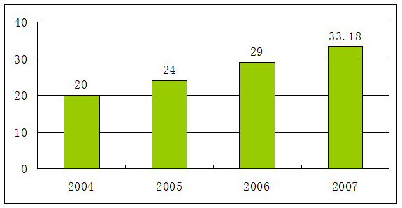 2006年我国PE专用料对HDPE的消费量约60.5万吨,主要领域为燃气管10万吨,给水管22万吨,埋地排水、排污管10万吨,电线电缆护套管12.5万吨,交联PE管6万吨。其中PE63级专用料消费量约20万吨,PE80、PE100约40万吨。目前国内PE80、PE100等级的PE管材料基本依赖进口,年进口量在20万~25万吨。