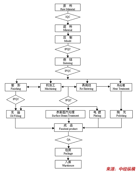 粉末冶金产品工艺特点:不需要或只需极少量切削加工;材料利用率可高达 97 %;零件尺寸的制造公差较小且具有再现性;材料成分可调;零件表面光洁度较好;可通过热处理提高硬度和耐磨性;对于自润滑或过滤用,可提供具有可控孔隙度的材料或制品;可制造其他金属成形工艺不能制造的,形状复杂或奇特的零件;适于中等至大批量零件生产。