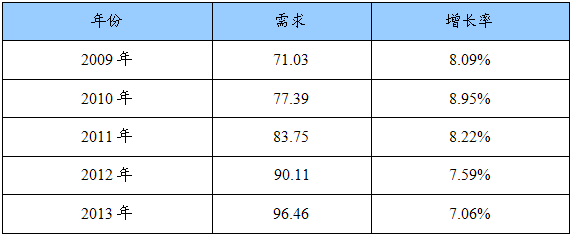 2009-2013年我国口杯纸市场需求规模预测表