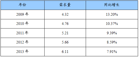 2009-2013年我国柠檬酸三丁酯市场规模预测