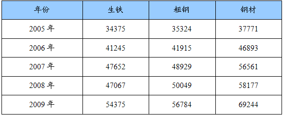 2005-2009年我国钢铁产量