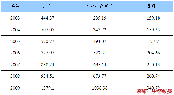 2003-2009年我国汽车产量变化情况