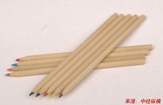 再生纸则是以废纸做原料,将其打碎、去色、制浆经过多种工序加工生产出来的纸张,制笔流程与报纸铅笔杆是相同的。