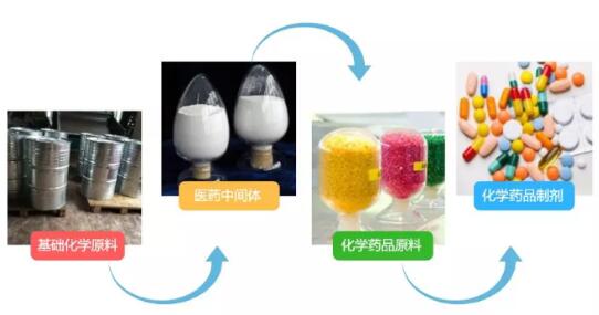 医药中间体的研发、生产及销售的上游 行业 为基础化工原料 行业 ,下游 行业 为化学原料药以及化学药物制剂 行业 。
