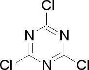 三聚氯氰(C3N3CL3),又称三聚氰酰氯、氰尿酰氯,外观为白色粉末,在空气中不稳定,有挥发性和刺激性,熔点145.5 ℃,相对密度1.32,溶于苯、热乙醚、丙酮、乙腈、二氧六环、乙醇、醋酸、氯仿、四氯化碳等有机溶剂,微溶于水,遇水及碱易分解成三聚氰酸,同时放出氯化氢气体。