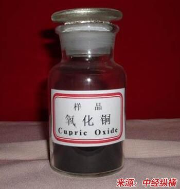 氧化铜(cupric oxide),化学式CuO。是一种铜的黑色氧化物,略显两性,稍有吸湿性。相对分子质量为79.545,密度为6.3~6.9 g/cm3,熔点1026℃。 不溶于水和乙醇,溶于酸、氯化铵及氰化钾溶液,氨溶液中缓慢溶解,能与强碱反应。氧化铜主要用于制人造丝、陶瓷、釉及搪瓷、电池、石油脱硫剂、杀虫剂,也供制氢、催化剂、绿色玻璃等用。(产业 规划 )