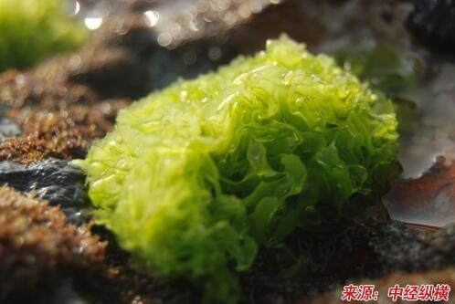 潮间带依潮汐的大潮、小潮变化,分为上部、中部及下部三区。在潮间带上部,多属于绿藻类,常见有膜状的石莼、管状的石发或丝状的刚毛藻,都是可以忍受强光照射及每日二次涨退潮的干湿变化,尤其在冬、春季时,常在海蚀平台上形成一片青葱翠绿的“绿色地毯”。在夏季,此区和飞沫带一样,岩石上多是裸露光秃,但在潮池内或有遮阴之处,则仍可发现它们的踪影。