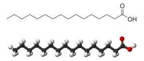 软脂酸是第一种从脂肪生成中产生的脂肪酸,亦可以由它产生更长的脂肪酸。软脂酸盐对乙酰辅酶A羧化酶有负面反应,而乙酰辅酶A羧化酶可以催化乙酰辅酶A 生成丙二酸单酰辅酶A 的羧化作用。丙二酸单酰辅酶A 作为长链脂肪酸合成的前体,在脂肪酸的合成中作为C2 单位的供体,并且在脂肪酸的氧化中作为线粒体穿梭系统的调节因子。因而可以阻止软脂酸盐的生成。