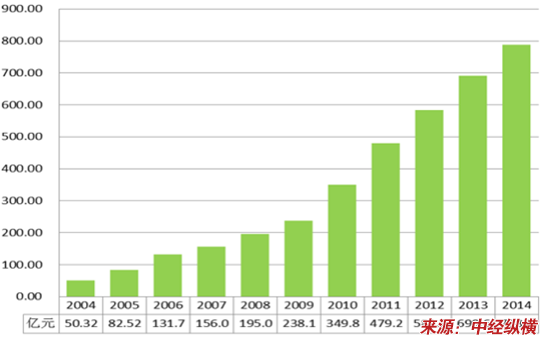 同时,也为林产化工产业的发展提供了良好的物质基础。在国民经济持续发展、林业资源综合利用和环境保护意识不断增强的背景下, 我国林产化工产业逐渐发展壮大, 产品品种、数量不断增加,产品结构日益优化,形成了较为完善的林产化工产业体系,并已发展成为世界林化产品主要生产国之一。近年来,我国松香、活性炭等主要林化产品的产量和出口量均居世界第一。进入 21 世纪以来,国家加强了林业产业结构调整,我国林产化工产业发展速度进一步加快,森林资源综合利用效率、林产品的附加值不断提高, 全 行业 营收总额从 2004 年的 50.32 亿元增长至 2014 年的788.34 亿元,年复合增长率达到 32.62%。