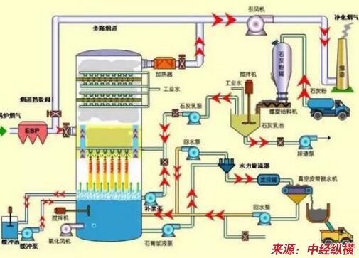 石灰石——石膏法脱硫工艺是世界上应用最广泛的一种脱硫技术,日本、德国、美国的火力发电厂采用的烟气脱硫装置约90%采用此工艺。