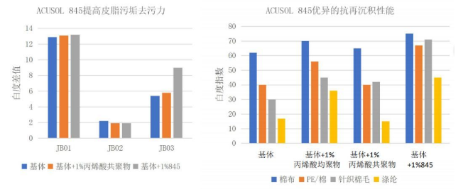 而ACUSOL 845针对多种织物和洗衣液配方,可以提高皮脂污垢的去污力并提供出色的白度保持性能。