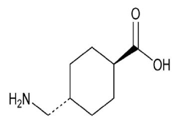 氨甲环酸又名凝血酸,化学名为反-4-氨甲基环已烷甲酸,白色结晶性粉末;无臭,味微苦。在水中易溶,在乙醇、丙酮、三氯甲烷或乙醚中几乎不溶。分子式为C8H15NO2,分子量为157.21000,密度为1.095 g/cm3,熔点为233ºC,沸点为300.2ºC at 760 mmHg。(立项报告)