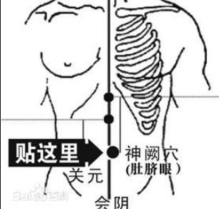 脐(即神阙穴)在腹部中央,是人体的一个重要的经穴,与经络有非常密切的关系,中医称之为十二经络之根、呼吸之门;神阙穴居脐中央,是任脉的一个重要穴位(任脉为经之海,因此刺激此穴对五脏六腑具有调节作用),又因脐部的皮肤比较薄,神经及血管比较丰富,它所支持的脏器以及血管包括模隔膜、肝、脾、胃、肾上腺、输尿管、膀胱,因此脐部透过与五脏六腑、十二经脉、奇经八脉的联系,有比较强的吸收和传导能力。 临床上灸脐可治晕厥、昏迷、休克,故有兴奋大脑、强心、改善微循环的作用;药物敷脐可治虚汗,神经性呕吐,故有调整植物神经功能失调的作用;灸神阙可治阳萎、不孕,故有调节内分泌紊乱的功能;在神阙穴上拔火罐,可治荨麻疹和过敏性哮喘,可作用于免疫系统、抑制过敏反应。