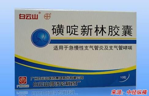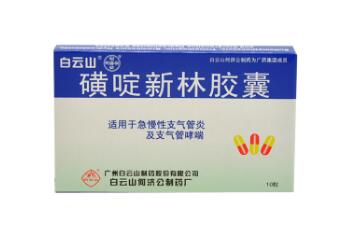 磺啶新林胶囊,适应症为适用于急慢性支气管炎及支气管哮喘。本品为复方制剂,其组分为每粒含盐酸溴己新4mg,盐酸氯丙那林2mg,磺胺甲噁唑200mg,甲氧苄啶40mg。本品为胶囊剂,内容物为白色或类白色的粉末或颗粒,无臭;味微苦。(可研报告)