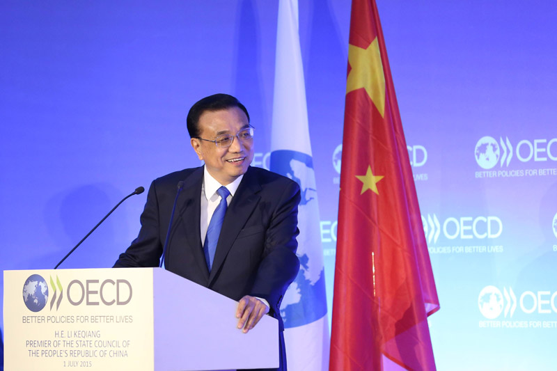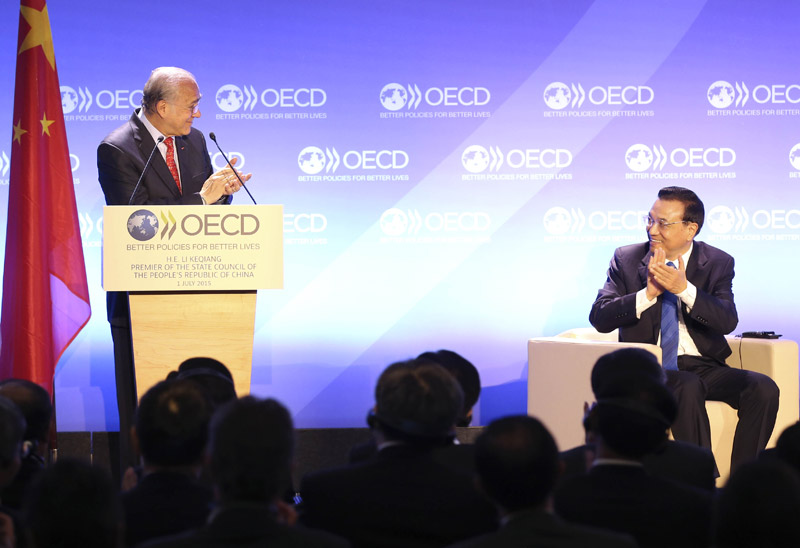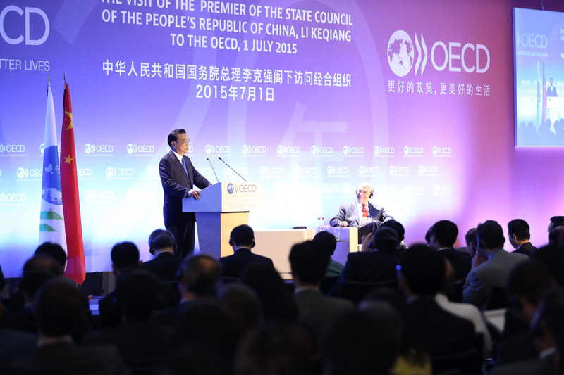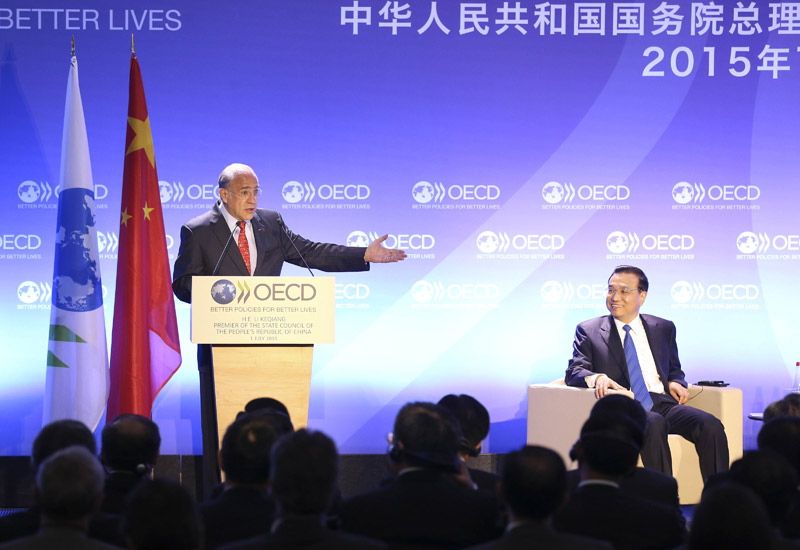 李克强总理1日在经合组织总部发表演讲。经合组织秘书长古里亚开场时用中文引用谚语“人心齐,泰山移”,希望双方加强合作。对此,李克强两次用同一谚语回应,表示愿同经合组织携手既做思想者也做实践者,想更多好主意,采取更多务实行动,推动共同发展。