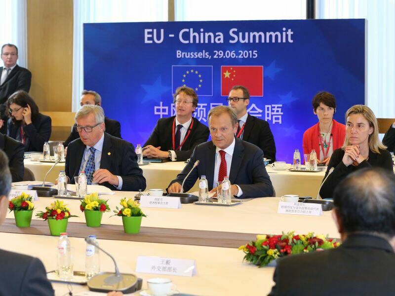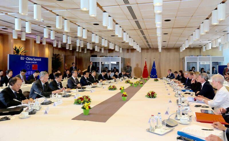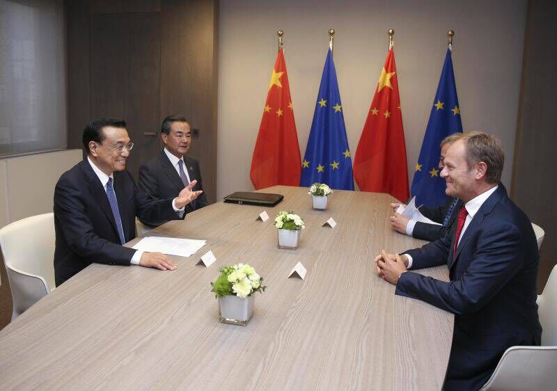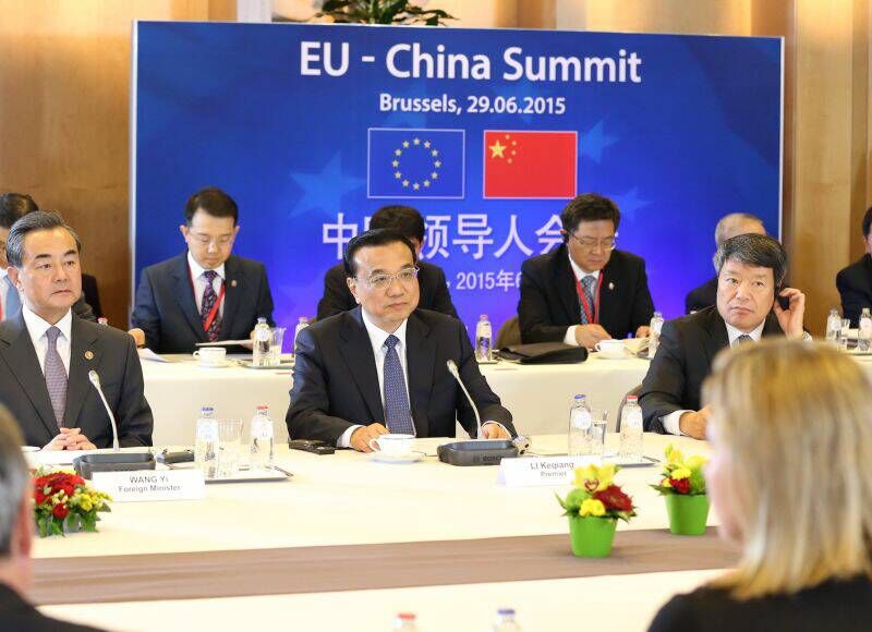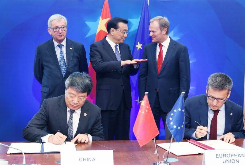 29日下午,第17次中欧领导人会晤在布鲁塞尔举行,李克强总理同欧洲理事会主席图斯克、欧盟委员会主席容克共同主持。会晤取得重要成果,发表了会晤联合声明和关于气候变化的联合声明,在科技、知识产权、区域政策、海关等领域签署多项合作文件,并就广泛议题达成共识。