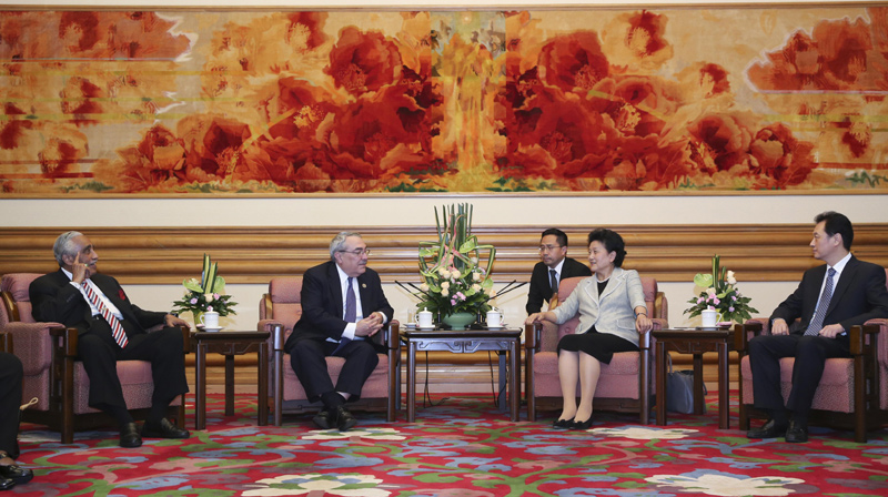 8月12日,中国国务院副总理刘延东在北京中南海会见美国国会众院非洲裔议员小组代表团。新华社记者 丁林 摄