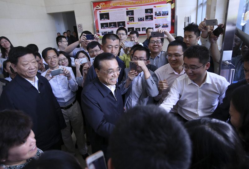 2016年5月6日,李克强考察人力资源社会保障部,与正在会商农民工就业形势的工作人员展开讨论。有关负责人介绍一季度农民工就业形势总体平稳但仍存在隐忧。总理为他们“支招”:加大服务业吸纳农民工就业能力;加快农民工就近就地创业就业。促进他们就业的产业转型和空间转型。(资料图)