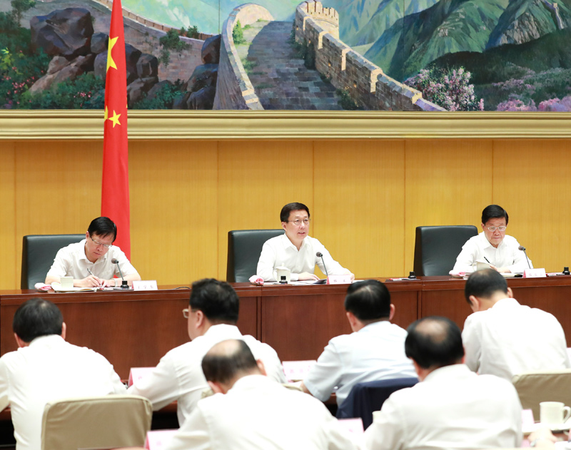 7月18日,全国户籍制度改革推进电视电话会议在北京召开。中共中央政治局常委、国务院副总理韩正出席会议并讲话。新华社记者 庞兴雷 摄