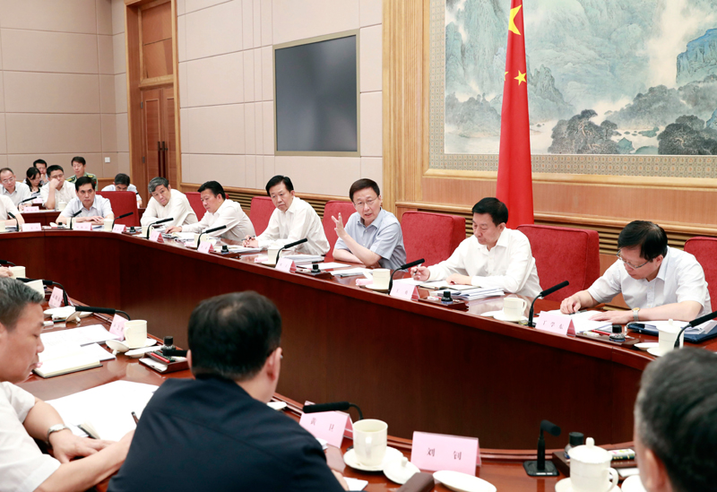 7月25日,中共中央政治局常委、国务院副总理、国务院推进政府职能转变和“放管服”改革协调小组组长韩正在北京主持召开国务院推进政府职能转变和“放管服”改革协调小组全体会议。新华社记者 庞兴雷 摄