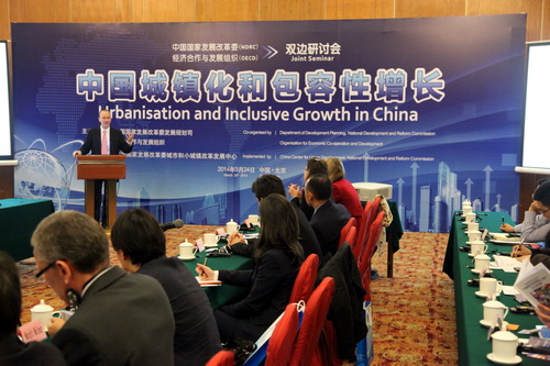 3月24日,中国国家发展改革委与经济合作与发展组织在京举办双边研讨会,中外专家学者就中国城镇化和包容性增长相关议题进行了深入研讨。我委徐宪平副主任、经合组织秘书长古利亚出席会议并致辞。