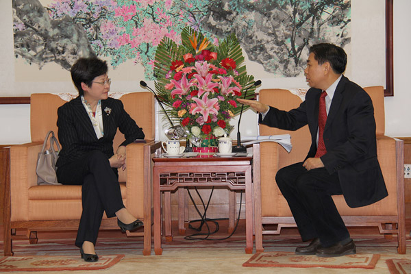11月24日下午,徐宪平副主任在委内会见了香港特区政府政务司司长林郑月娥女士一行,双方就香港参与国家“十三五”规划有关事宜交换了意见。规划司、地区司、基础司、高技术司、经贸司、财金司负责同志参加会见。